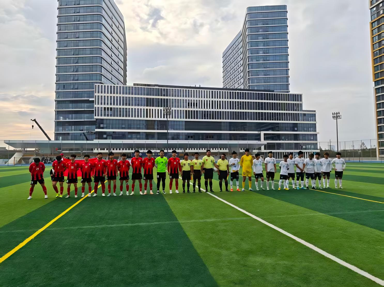 • 11月12日下午,苏州市第三届大学生足球联赛在文缘体育场如期开战,我校足球队主场迎战苏州健雄职业技术学院。校长助理、校工会主席袁祥,学生事务部(安全保卫部)主任胡赛,校团委副书记陈永超到场观赛,为参赛队员加油鼓劲。比赛第7分钟,对手抓住我校后防盯防不紧的机会率先进球,我校一度0:1落后。面对不利局面,队员们迅速稳住心态,坚持既定战术。第26分钟,樊博晓高速下底传中,队长10号麻轩瑞凌空侧勾破门,将比分扳为1:1。易边再战,我校攻势不断加强,多次击中横梁制造险情。第90分钟,替补登场的14号姜浩轩在前场混战中冷静推射完成压哨绝杀,帮助我校足球队2:1逆转取胜,豪取联赛两连胜,目前暂列积分榜第二位。整场比赛中,我校球员从落后不乱、扳平不松,到读秒绝杀不懈拼搏,充分展现了顽强坚韧、团结协作的精神风貌。看台上助威声此起彼伏,绝杀瞬间将文缘球场点燃,彰显出我校良好的校园体育氛围和青年学子蓬勃向上的朝气。此次2:1逆转取胜,是我校足球队在本届联赛中的又一次精彩亮相。下一步,球队将认真复盘前两场比赛,加强战术布置与交流磨合,提升攻防转换和团队协作水平,在接下来的比赛中全力以赴,力争在苏州市第三届大学