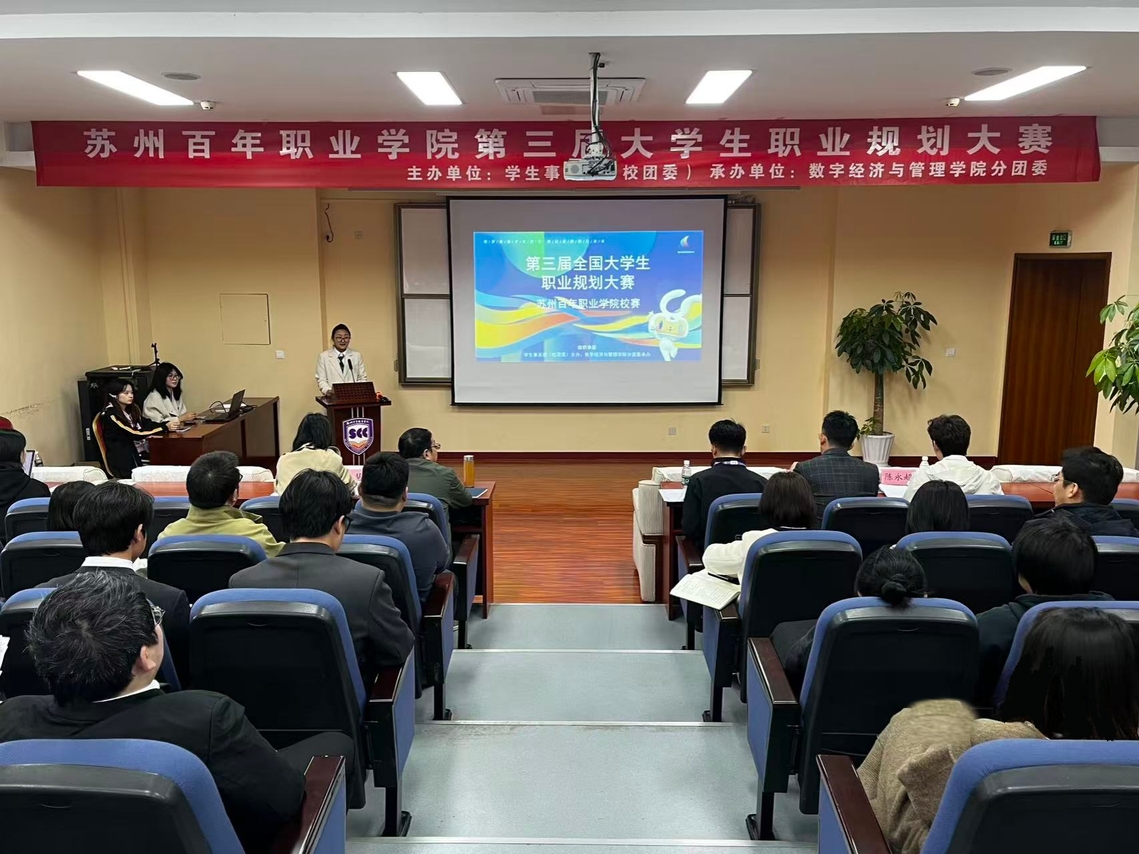 • 为助力我校学子明确职业方向、提升就业竞争力,树立正确的成才观、就业观和择业观,11月12日,由学生事务部(校团委)主办,数字经济与管理学院分团委承办的第三届全国大学生职业规划大赛校赛顺利举办。校长助理袁祥、继续教育学院(培训中心)院长张青、学生事务部(安全保卫部)主任胡赛、行政事务部(校长办公室)副主任李永泰、教学事务部副主任赵慧、学生事务部(安全保卫部)副主任张正国、校团委副书记陈永超以及各二级学院党总支副书记、副院长等作为评委及嘉宾参与此次活动。大赛分为生涯展示与评委提问两个环节。选手们围绕个人职业目标,结合专业特色与行业趋势,从职业探索、实施路径以及动态调整等方面展开生涯展示,评委们从职业规划的科学性、可行性等方面进行专业点评。校长助理袁祥在总结讲话中深刻阐释了职业规划对大学生明晰成长方向、提升核心竞争力的重要意义,针对选手们规划中的不足提出了切实可行的改进建议,为学生职业发展提供了宝贵指导。经过激烈角逐,大赛评选出一、二、三等奖若干名。本次大赛以“筑梦青春志在四方,规划启航职引未来”为主题,旨在以赛促学、以赛促教、以赛促就,全力打造一堂生动真实的生涯教育大课,推动生涯教育走深走