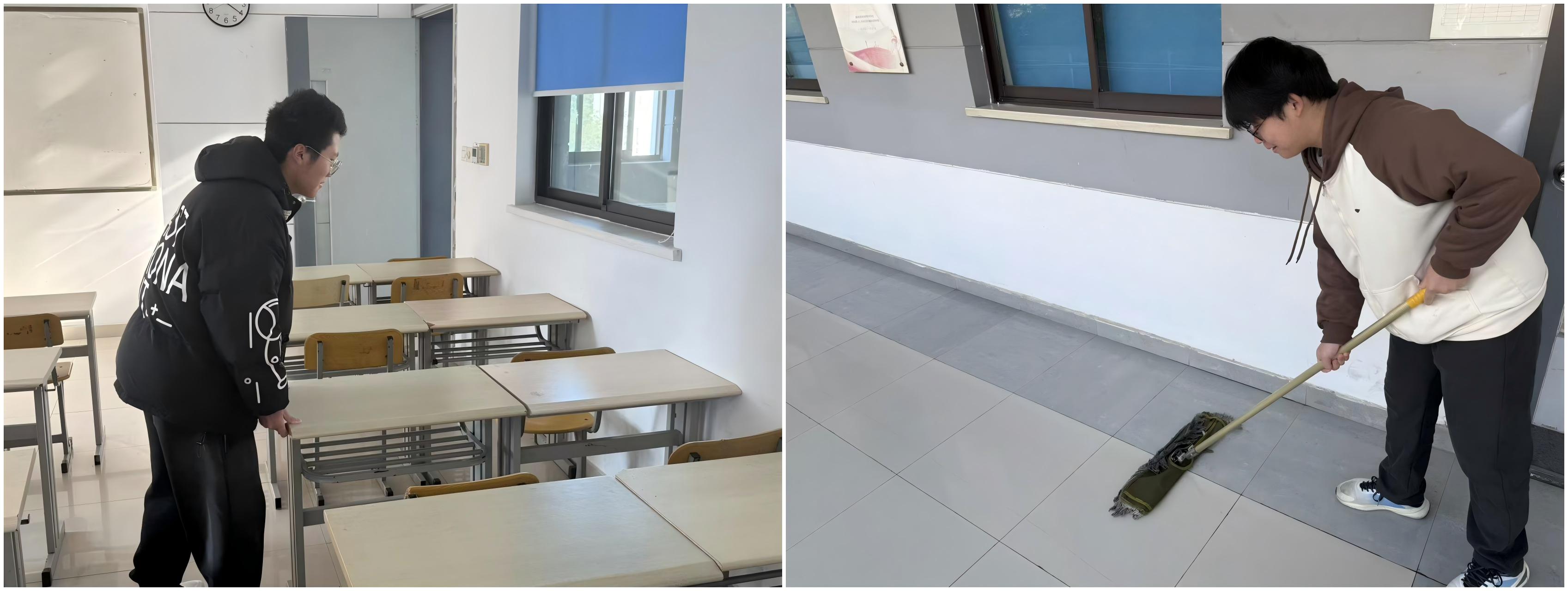 • 为进一步营造整洁有序的学习环境,提升校园文明形象,增强师生归属感、荣誉感和爱校荣校意识,各二级学院积极响应学校号召,于11月17日至21日集中开展“美丽校园”楼宇专项整治行动。此次行动覆盖显荣楼、博学楼、笃行楼、闻道楼、术业楼、求索楼、求是楼等多栋楼宇,重点围绕“禁烟检查、卫生清洁、物品归置、环境布置、隐患消除、维修维护”等任务展开,旨在显著改善楼宇环境。智能制造学院志愿者在求索楼认真打扫卫生、整理桌椅行动伊始,各二级学院均召开动员会议,明确责任区域与工作标准:教室需做到“地面无垃圾、桌椅成直线”,走廊须保持“墙面无污渍、扶手无灰尘”,办公区域要求“文件归位、杂物清零”,卫生间确保“无烟蒂、清洁工具定点摆放”,书籍架需“分类有序、层架无积灰”,确保每个区域的整治标准清晰可依,让师生们对整治目标有明确认知。人工智能与大数据学院志愿者在显荣楼、求是楼认真整理机房师生志愿者们手持扫帚、抹布等工具,分批奔赴责任楼宇,按既定分工投入工作:有人俯身清扫角落积尘,有人蹲地拾捡缝隙烟头,有人合力扶正歪倒桌椅,有人踮脚擦拭高处窗棂……忙碌的身影遍布校园,绘就一道生动的“劳动美”风景线。数字经济与管理学院