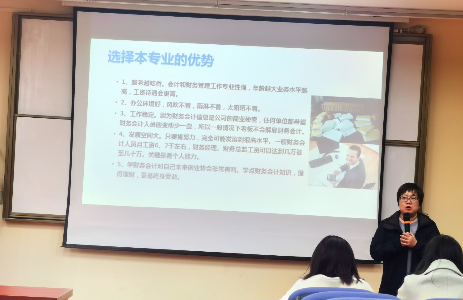 讲座伊始,黎老师首先向大家介绍了会计专业专转本的考试内容和初级会计职称的相关内容,她详细阐述了考试科目、分值比例以及备考策略,并结合自己多年的教学经验,为同学们提供了实用的复习方法和技巧。