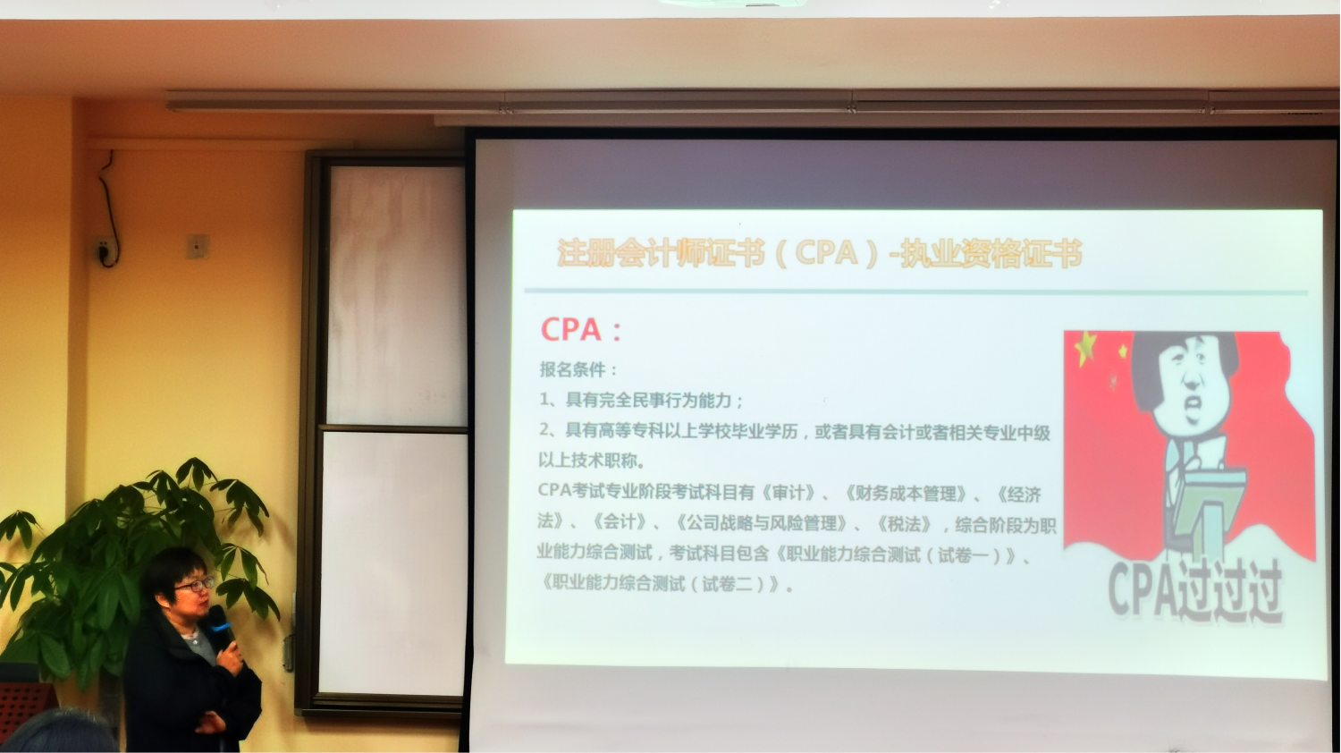11月21日,在慎微楼报告厅资深会计行业专家黎纪东女士以风趣幽默的语言、清晰的思路和贴近学生现实的讲解为我校会计专业学生举行了一场别开生面的讲座。我校大数据与会计专业主任刘金梅老师、国际金融专业主任郭慧老师参加了本次讲座。