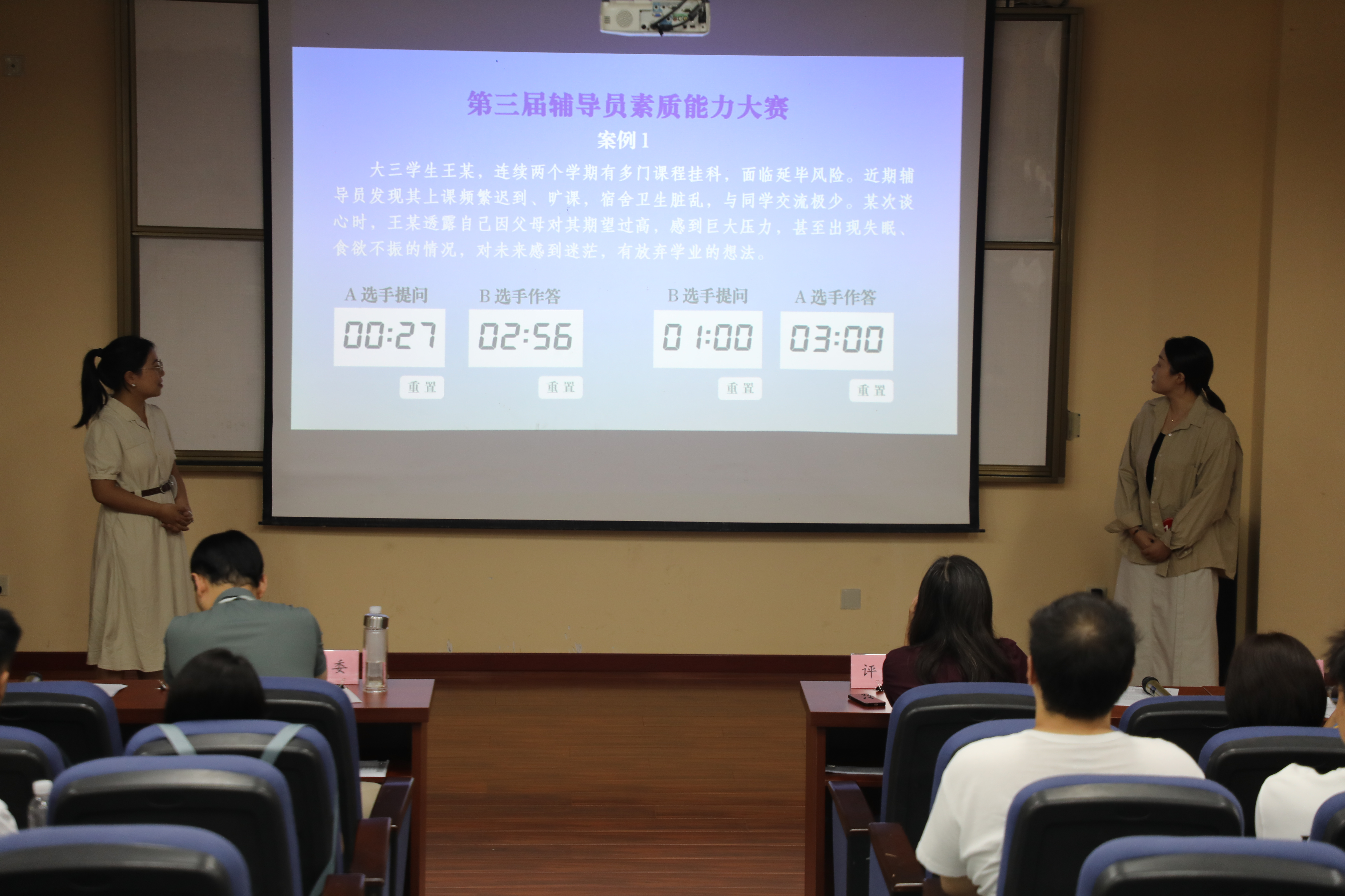 案例研讨环节,面对各类案例,参赛选手在“你来我往,一问一答”的紧张节奏中精准研判问题关键点、快速阐述解决思路,透过纷繁复杂的学生案例总结工作规律,展现出扎实的工作能力和水平。