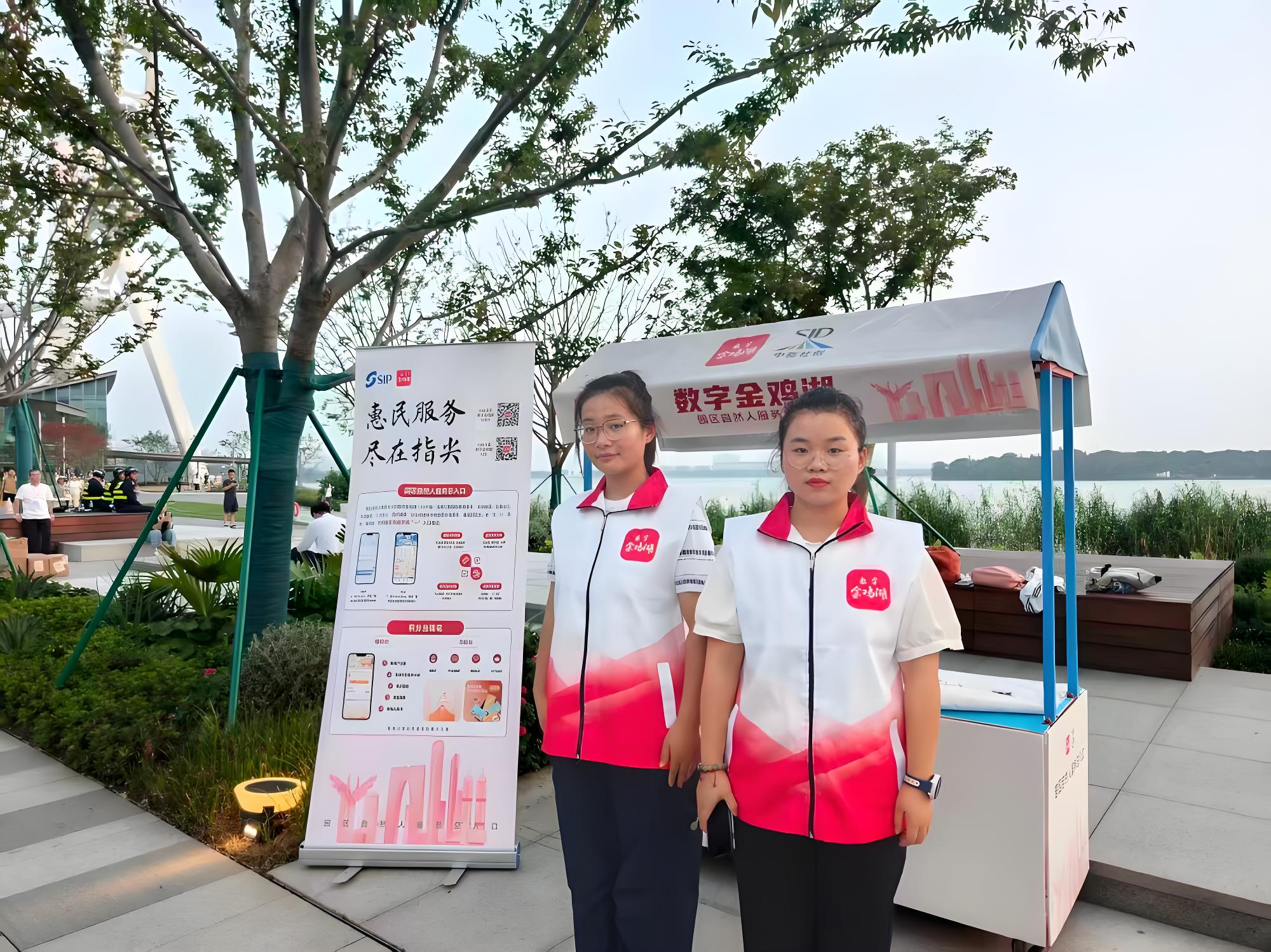 为助力园区市民更好地融入数字化生活,9月27日,我校数字经济与管理学院分团委组织“青年先锋队”志愿者开展便民推广志愿服务。陈家豪老师带领志愿者在右岸音乐广场开展“数字金鸡湖”App推广活动,将智慧便民服务送到市民身边。