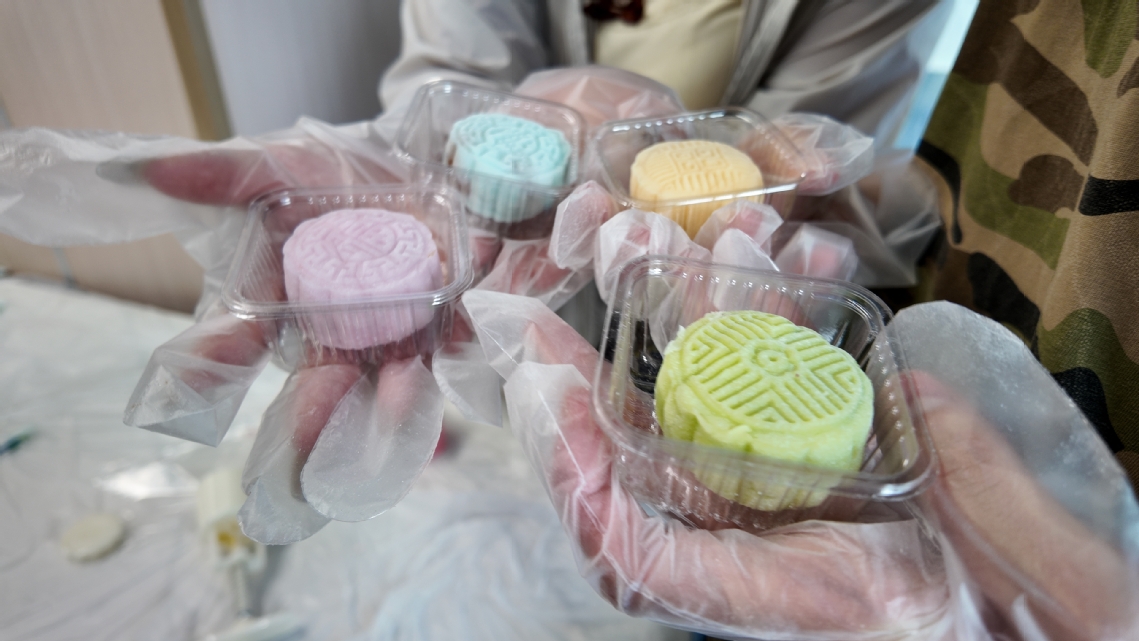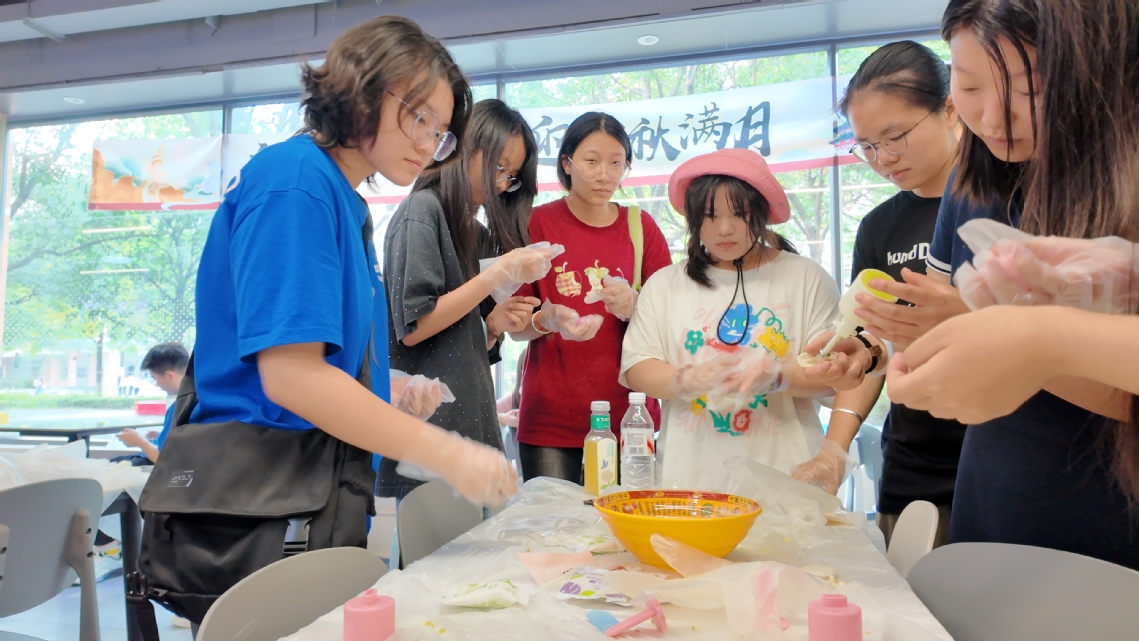 创意为传统注入新意。有的同学巧妙运用果粉调制出渐变色的饼皮,有的则特意选用具有家乡风味的馅料,以月饼寄托思乡之情。当一枚枚纹样精美、造型别致的冰皮月饼陆续成型,大家细心将其装盒封装,并相互赠送、分享喜悦。软糯的月饼不仅凝聚了手艺的温度,更承载了同窗之间的情谊与祝福。
