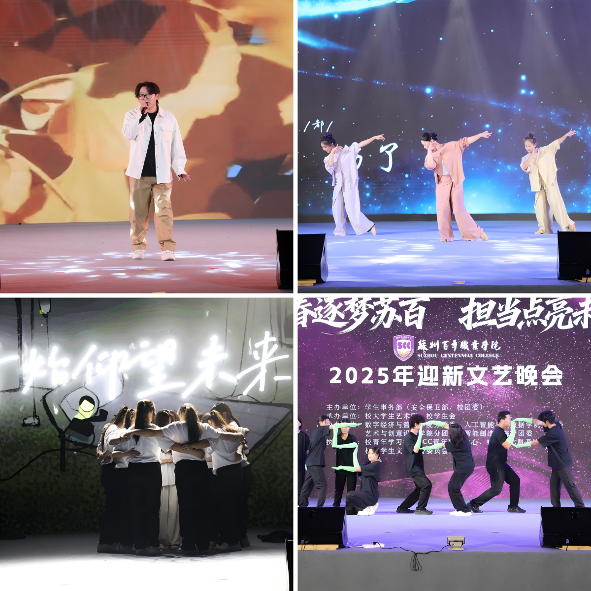晚会在AI灯光秀和气势恢宏的开场词中拉开帷幕。“千载弦歌薪火,百年树人新章““灯火辉映湖光,星河聚梦想”......六位师生主持人以饱含深情的诗句,既展现了学校深厚的文化底蕴,也表达了对新生的美好祝愿。