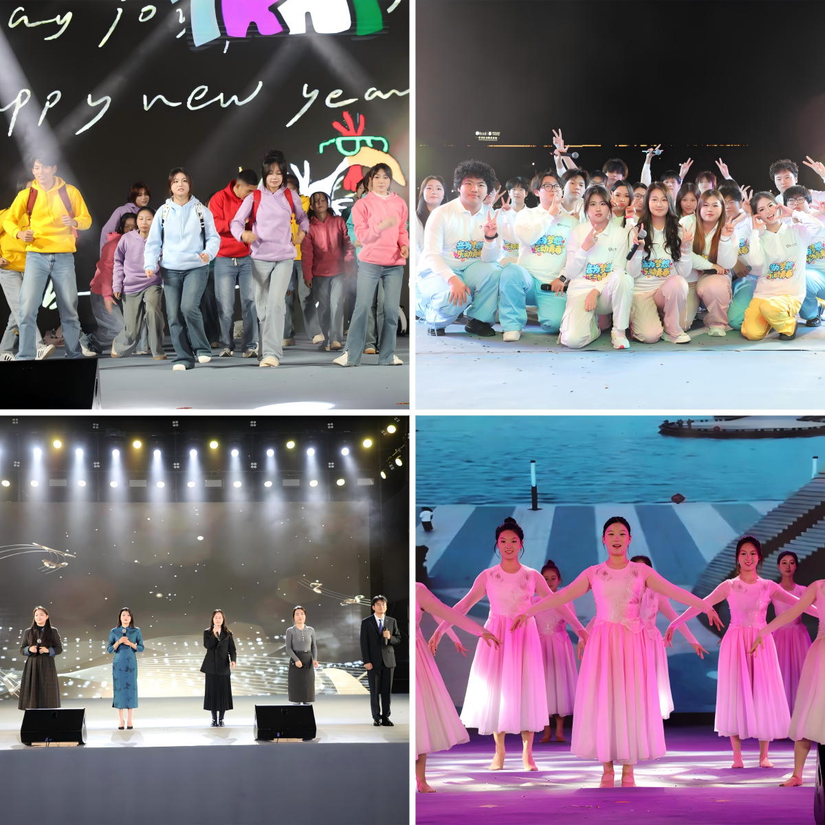 篇章三“青葱岁月·温暖相伴”如同温暖的春风,轻轻拂过每一位观众的心田。流行歌曲串烧唤起青春记忆,现代舞《家有儿女+我的未来式》引发全场共鸣,互动合唱《像你这样的朋友》让现场化作星海,新生辅导员代表的情景朗诵《廿载芳华,因你而来》真挚动人,现代舞《金鸡湖之歌》则展现了学子与苏州这座城市的深厚情缘。