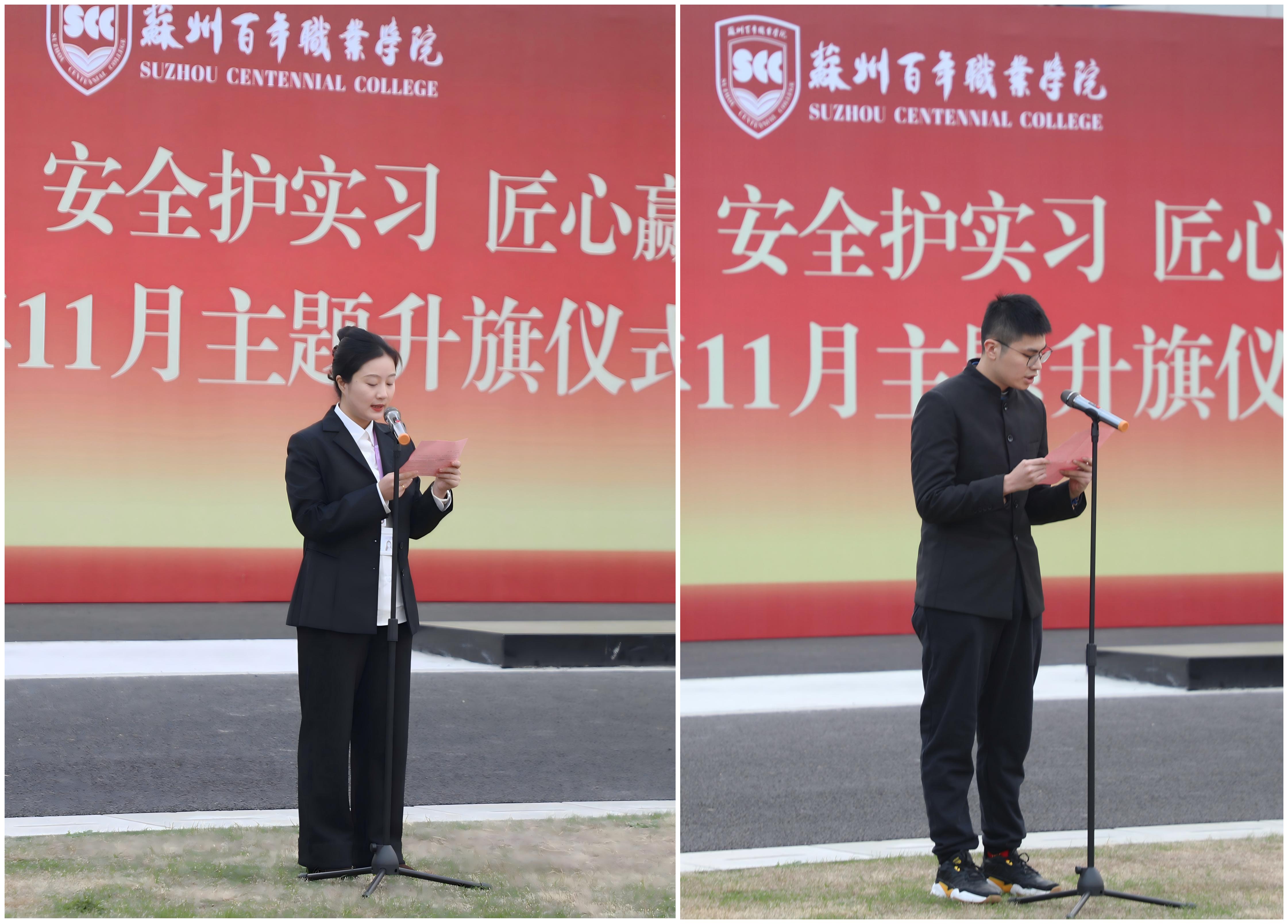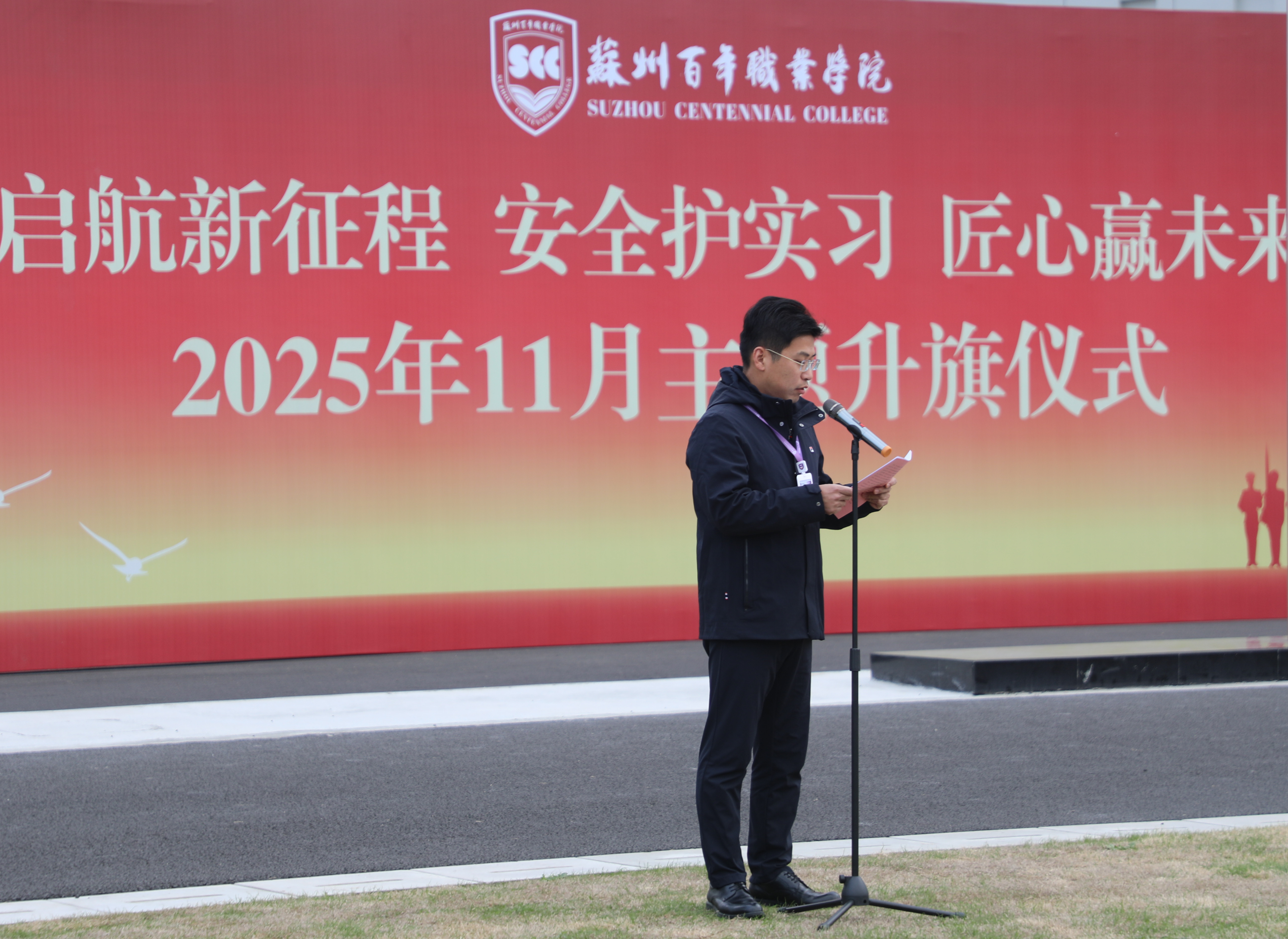 11月24日清晨,伟德体育“启航新征程 安全护实习 匠心赢未来”2025年11月主题升旗仪式在学校运动场隆重举行,学校党委委员、校长助理、校工会主席袁祥出席仪式并讲话,学生事务部(安全保卫部)主任胡赛主持仪式。